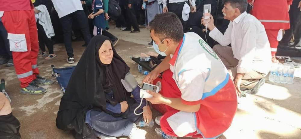 خدمت رسانی و فشارسنجی زائران اربعین توسط اعضای داوطلب هلال احمر / گزارش تصویری