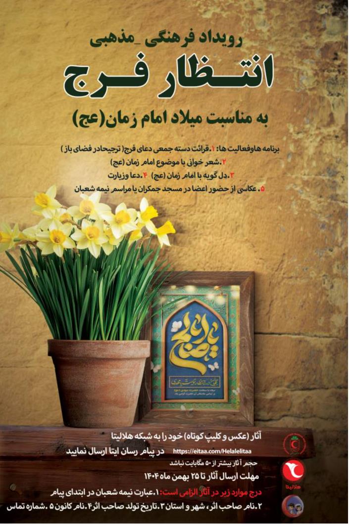 همزمان با فرارسیدن میلاد مسعود منجی بشریت، حضرت مهدی موعود (عج)، رویداد فرهنگی و مذهبی «انتظار فرج» ویژه کودکان و نوجوانان برگزار می‌شود.