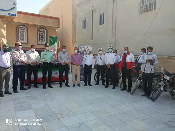 به مناسبت هفته ناجا جهت تشویق و ترغیب موتور سیکلت سواران در استفاده از کلاه ایمنی به گروهی از موتورسواران به صورت نمادین کلاه ایمنی اهدا شد.