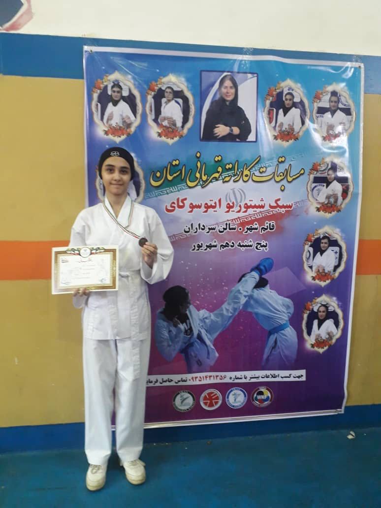 کسب رتبه سوم عضو کانون دانش آموزی شهرستان قائمشهر در مسابقات کاراته استانی