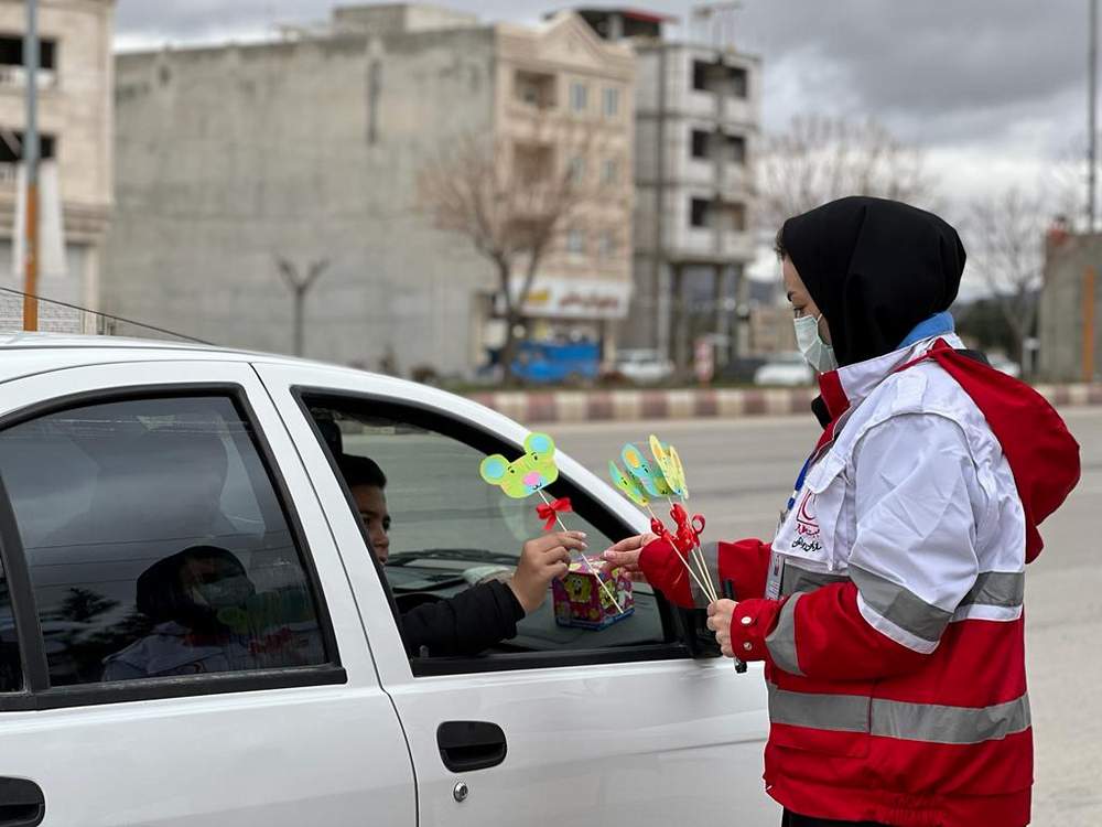 اعضای داوطلب هلال احمر استات اردبیل در بیست و دومین طرح خدمات بشردوستان نوروزی به مسافران خدمت می کنند.