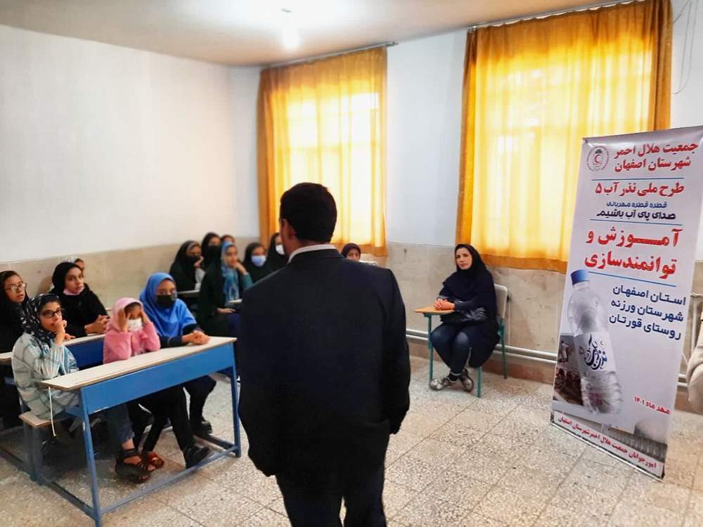 به گزارش روابط عمومی جمعیت هلال احمر استان اصفهان، محمدنوید متقی با اعلام این خبر، گفت: توزیع بیش از 200 جفت کفش طبی بین دانش آموزان نیازمند در طرح غربالگری کف پای صاف، توزیع بسته‌های معیشتی بین مددجویان و لوازم التحریر بین دانش آموزان نیازمند، برگزاری کارگاه‌های همدلی و مهارت زندگی، ارتباط موثر با نوجوانان و جوانان روستا، کارگاه آموزشی سواد رسانه ای، کارگاه آموزشی کارآفرینی، آموزش امداد و کمک های اولیه برگزاری مسابقات فرهنگی و نیز فضای دوستدار کودک و برنامه‌های فرهنگی - مذهبی از دیگر فعالیت های نذر آب 5 در این روستا می‌باشد.