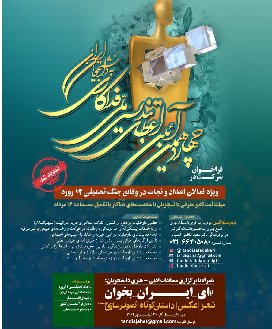 تمدید مهلت ثبت نام در آیین اعطای تندیس فداکاری به دانشجویان